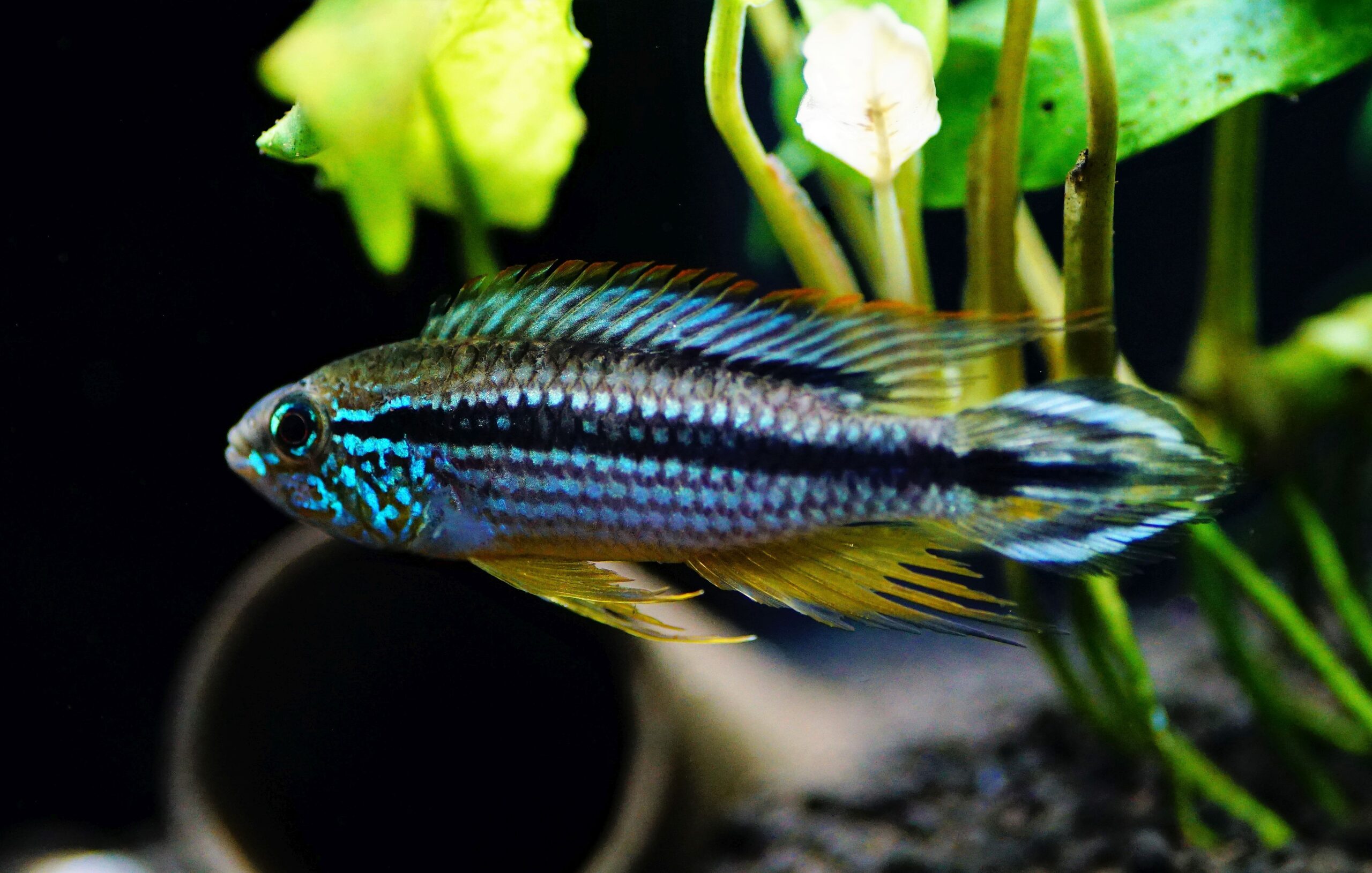 Apistogramma nijsseni wird bis zu 8cm groß und benötigt ein kleines Aquarium (ab 80 l), das mit feinem, dunklem Kies als Bodengrund und
