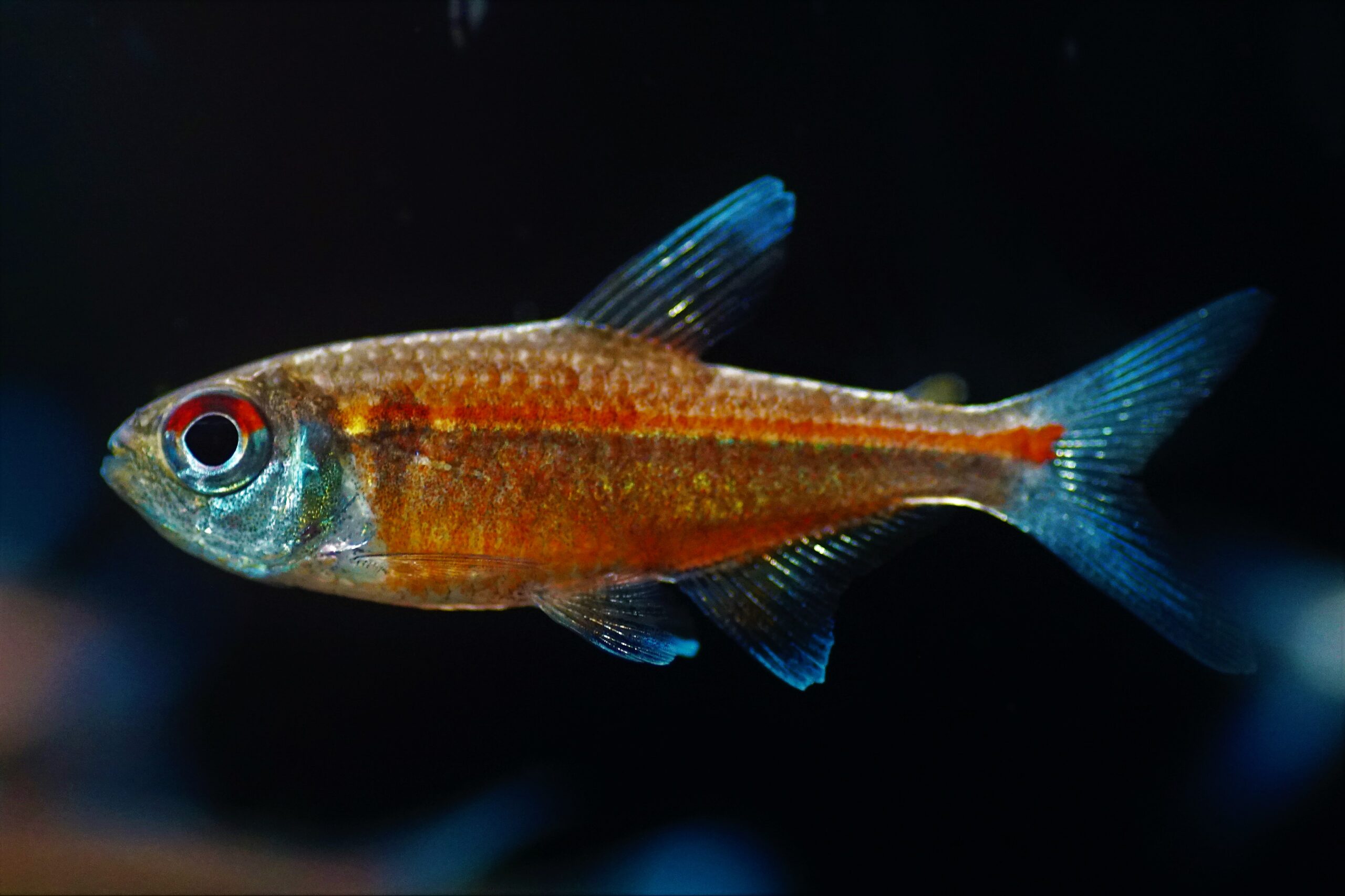 die schönen Salmler sind wie alle Fische von Fishtopia in einem Top Zustand. Die Männchen werden in der Balz am Körper dunkel rot und die Flossen schwarz. Auffallend sind auch die roten Augen und ein horizontaler roter Strich von Kopf bis Afterflosse.