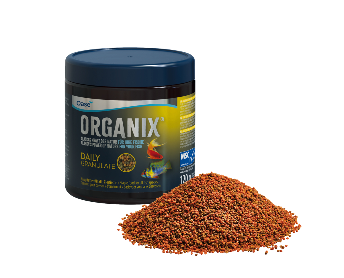 Perfekt für die artenreiche Fischfamilie der Barsche: Das ORGANIX Cichlid Granulate medium für mittelgroße Arten in Granulatform versorgt die Barsche optimal mit Proteinen, Fetten, Kohlenhydraten, Vitaminen und Spurenelementen aus nachhaltigem Seafood und eignen sich für die tägliche Fütterung – alle wichtigen Bausteine der Ernährung sind damit abgedeckt.
