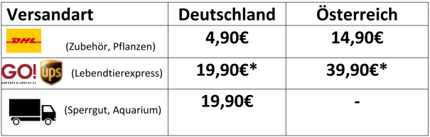 Werden Lebendtiere und Zubehör bzw. Pflanzen zusammen bestellt, fallen beide Versandkosten einmalig an. Da Zubehörartikel meist nicht mit Lebendtierexpress versendet werden können. Für Sperrgutartikel werden die Versandkosten pro Artikel berechnet.
